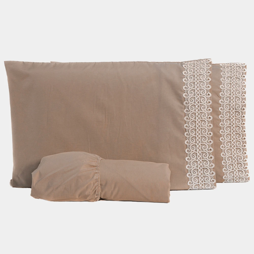 Confira a nova coleção Florença, com lindas cores que foram desenvolvidas especialmente para deixar o seu quarto ainda mais elegante. Esses lençóis são fabricados em tecido Percal de 200 fios composto com 80% Algodão de ótima qualidade!! Complete a decoração do seu Kit Florença com esse lindo jogo de lençol, acompanhado das 2 fronhas com acabamento em Guipir em toda a volta! Com a aplicação dessa renda Guipir se tem mais sofisticação e elegância, bonito e delicado para investir em uma decoração, totalmente em alta e é uma peça presente nas roupas e objetos decorativos por sua fácil composição e delicadeza, podendo facilmente ser utilizada em diversos ambientes para a decoração da casa, deixando tudo muito mais bonito e com um toque romântico. Perfeito para o conforto e a praticidade do seu dia-a-dia e também para presentear quem você ama! Confira!