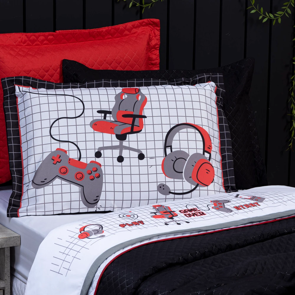 Confira o Jogo de Cama Game Streamer, com lindos detalhes que foram desenvolvidos especialmente para deixar o seu quarto ainda mais elegante. Esses lençóis são fabricados em tecido Percal 200 fios, trazendo mais conforto, resistência e praticidade na hora de lavar. Sempre visando conforto e a beleza de sua decoração e de quem você ama! Confira!