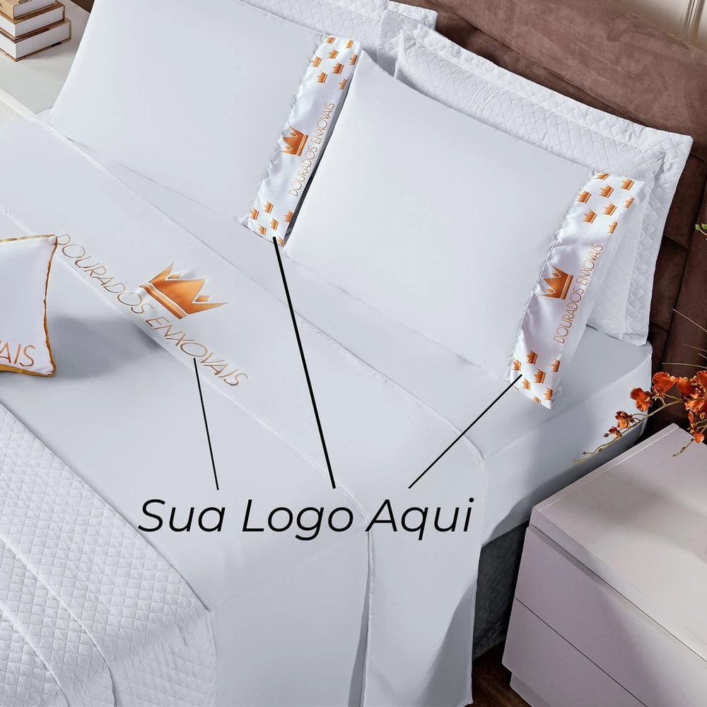 01 Lençol de Cima c/ Vira Estampada Logotipo Personalizada 2,50m x 2,40m