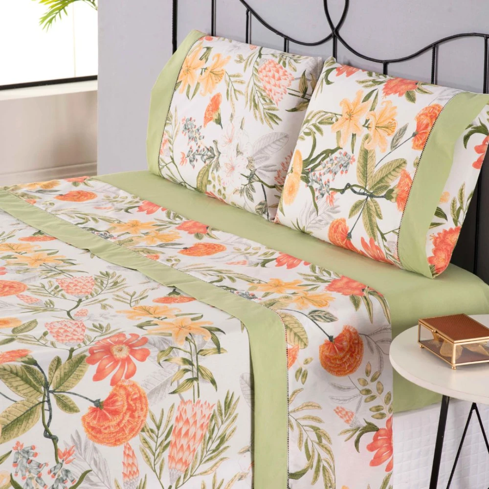Renove o visual do seu quarto com elegância e conforto! Nosso jogo de cama floral é confeccionado em 100% algodão, garantindo toque suave, frescor e noites de sono muito mais aconchegantes. Ideal para quem busca beleza e qualidade no enxoval.