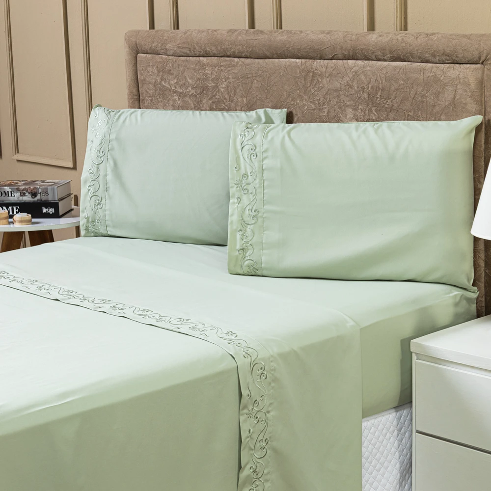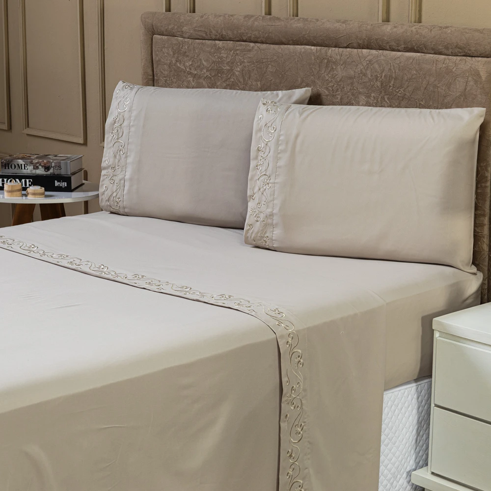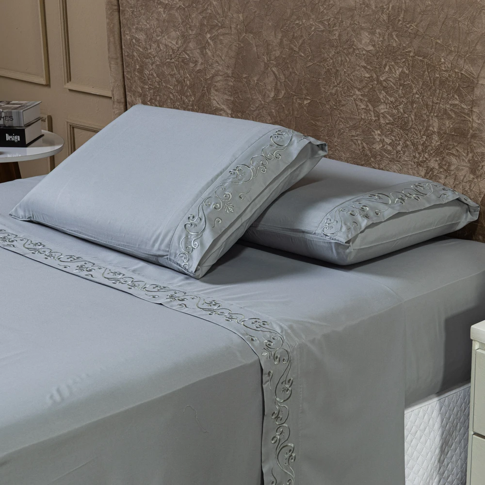 01 Lençol de Cima Liso com Vira em Bordado Floral 2,50m x 2,25m