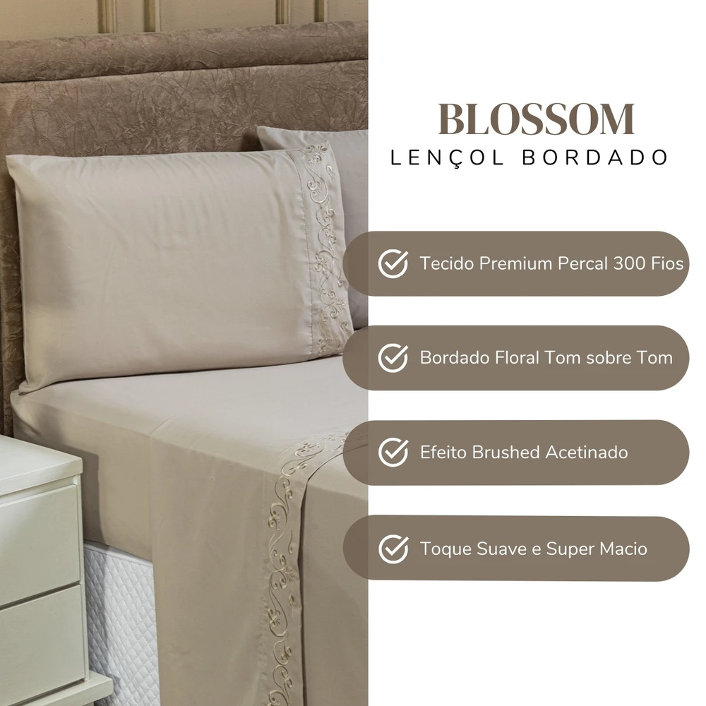 O Jogo de Cama Blossom é a escolha perfeita para quem busca sofisticação e conforto em sua cama. Composto por 4 peças, sendo lençol de baixo, lençol de cima e 2 fronhas, esse conjunto traz um delicado bordado floral em tom sobre tom com cores clássicas, que adicionam elegância e um toque contemporâneo ao seu ambiente. Feito com tecido percal de 300 fios, o jogo oferece um toque acetinado em efeito brushed, proporcionando uma sensação suave e refrescante durante o sono. Ideal para camas casal padrão, combina qualidade, durabilidade e um acabamento impecável, elevando o nível de conforto e estilo do seu quarto. Confira!