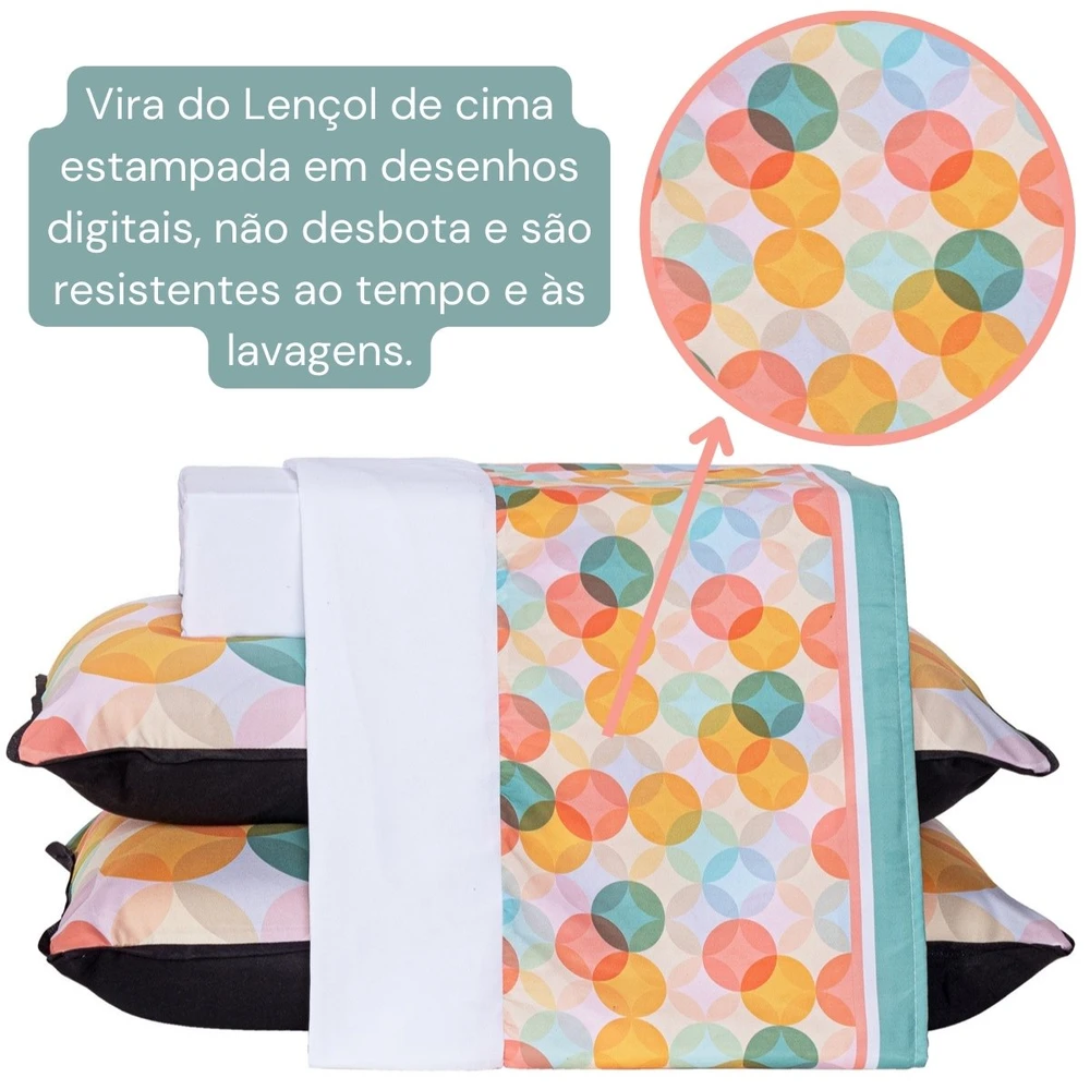 Desperte para o conforto e tranquilidade com o nosso Jogo de Lençol Love Relax! Confeccionado com o luxuoso percal de 200 fios, este conjunto de cama é o convite perfeito para uma noite de sono serena e relaxante. O toque macio e durável envolve você em um abraço de suavidade, garantindo conforto incomparável todas as noites. O design colorido vibrante e elegante, adicionando um toque de charme e simplicidade ao seu quarto, criando um ambiente acolhedor e relaxante para você se desconectar do mundo e recarregar suas energias. Este conjunto completo inclui quatro peças essenciais: um lençol de elástico todo branco, um lençol de cima com a vira estampada e duas fronhas estampadas, todos cuidadosamente projetados para garantir um ajuste perfeito em seu colchão e travesseiros. Desfrute de noites de sono revigorantes e desperte renovado com este lançamento. Adquira o seu hoje e mergulhe em um oásis de conforto e serenidade! Confira!