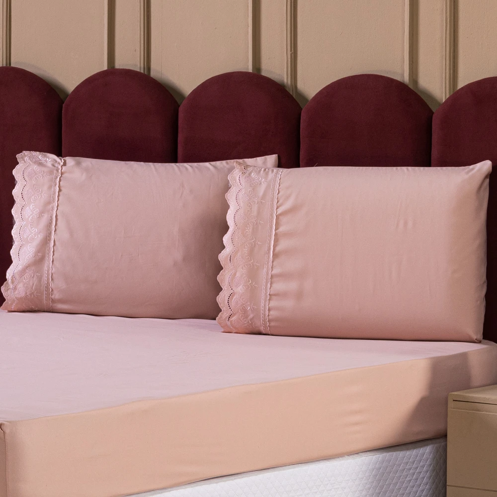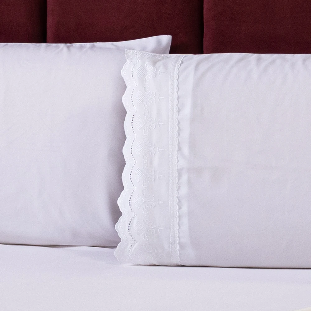 02 Fronhas Lisas com Bordado Inglês 70cm x 50cm