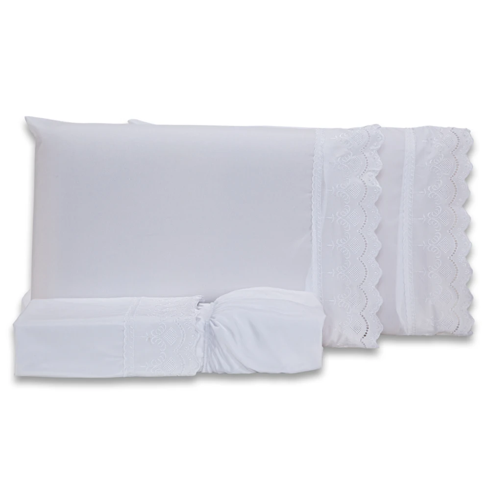02 Fronhas Lisas com Bordado Inglês 70cm x 50cm