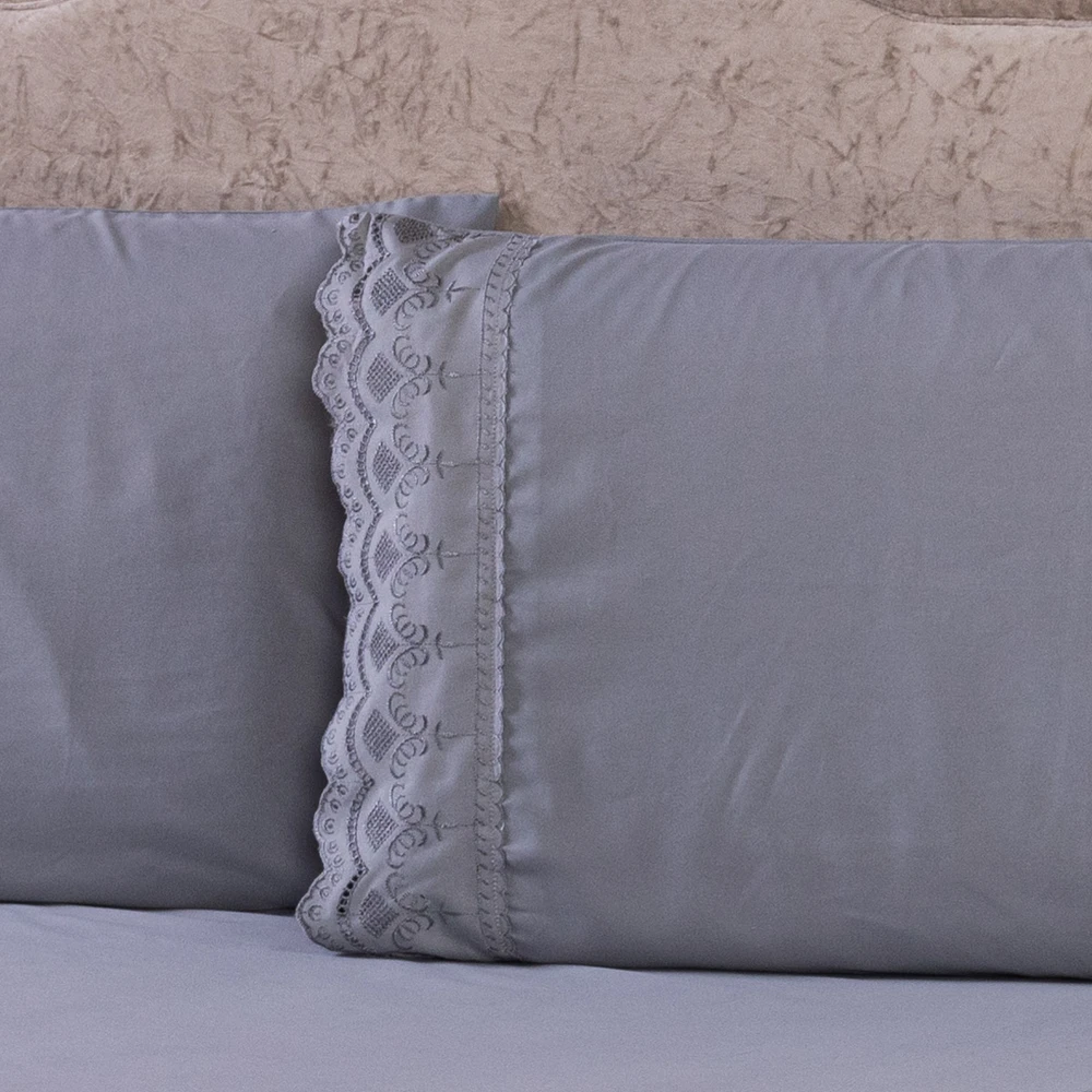 O Jogo de Cama Sublime é a escolha perfeita para quem busca elegância e conforto em cada detalhe. Confeccionado em Percal 300 Fios juntamente com a tecnologia do efeito Brushed duplamente escovado, oferece um toque acetinado que proporciona uma sensação de suavidade e frescor, ideal para noites de sono relaxantes. O delicado bordado inglês nas fronhas e na vira do lençol traz um toque de sofisticação ao conjunto, fazendo com que seu quarto ganhe um charme extra. Composto por 1 lençol de baixo com elástico para ajuste perfeito, 1 lençol de cima com a vira bordada e 2 fronhas com acabamento refinado, esse jogo de lençol é ideal para camas de tamanho casal king size. O toque acetinado confere um brilho suave que adiciona um charme sutil ao ambiente, tornando-o ainda mais acolhedor e elegante. Este conjunto combina a alta qualidade do Percal 300 Fios com a beleza atemporal do bordado inglês, resultando em um produto de alta durabilidade que mantém sua suavidade e aspecto impecáveis após diversas lavagens. Perfeito para quem deseja transformar o quarto em um verdadeiro refúgio de conforto e sofisticação. Confira!