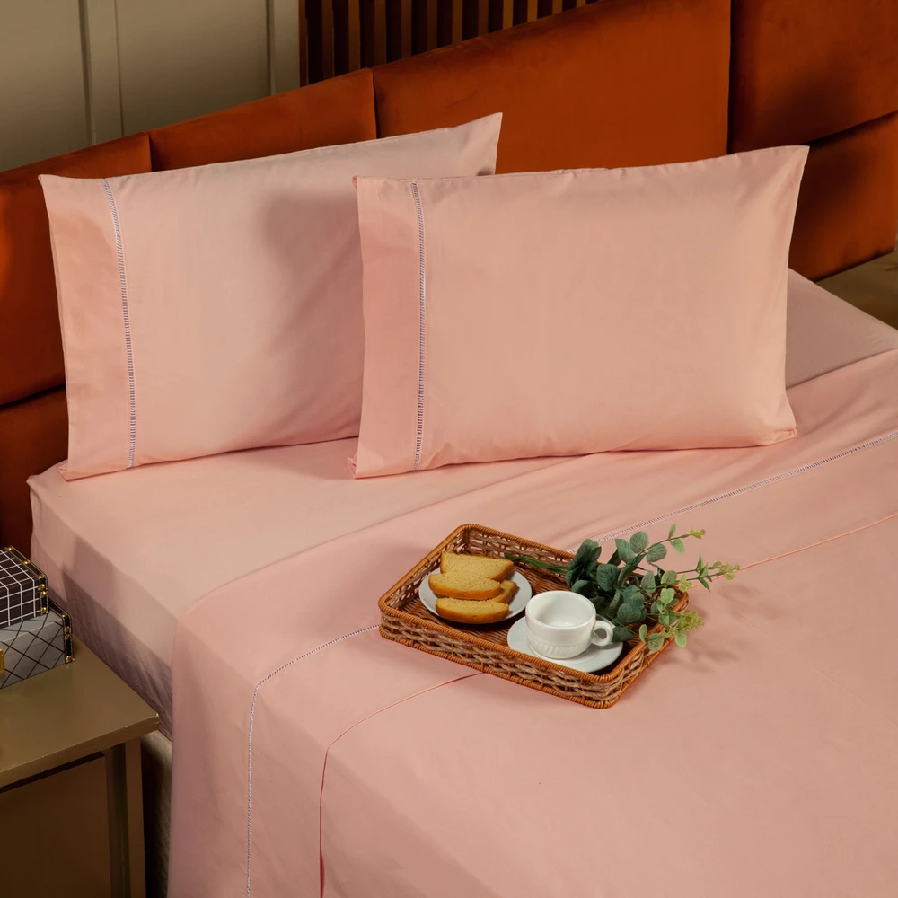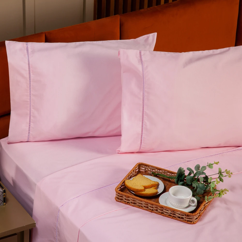 Nova coleção de lençóis Ponto Palito, com lindas cores que foram desenvolvidas especialmente para deixar o seu quarto ainda mais elegante. Esses lençóis são fabricados em tecido Percal de 200 fios composto com 80% Algodão de ótima qualidade!! Complete a decoração do seu quarto com esse lindo jogo de lençol, acompanhado das fronhas com detalhes em ponto palito no barrado! Perfeito para o conforto e a praticidade do seu dia-a-dia e também para presentear quem você ama! Confira!