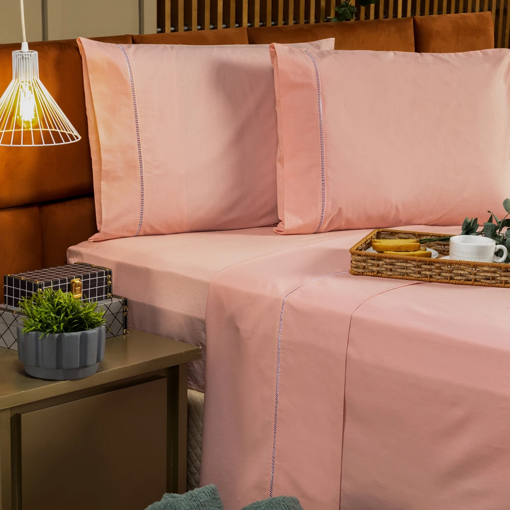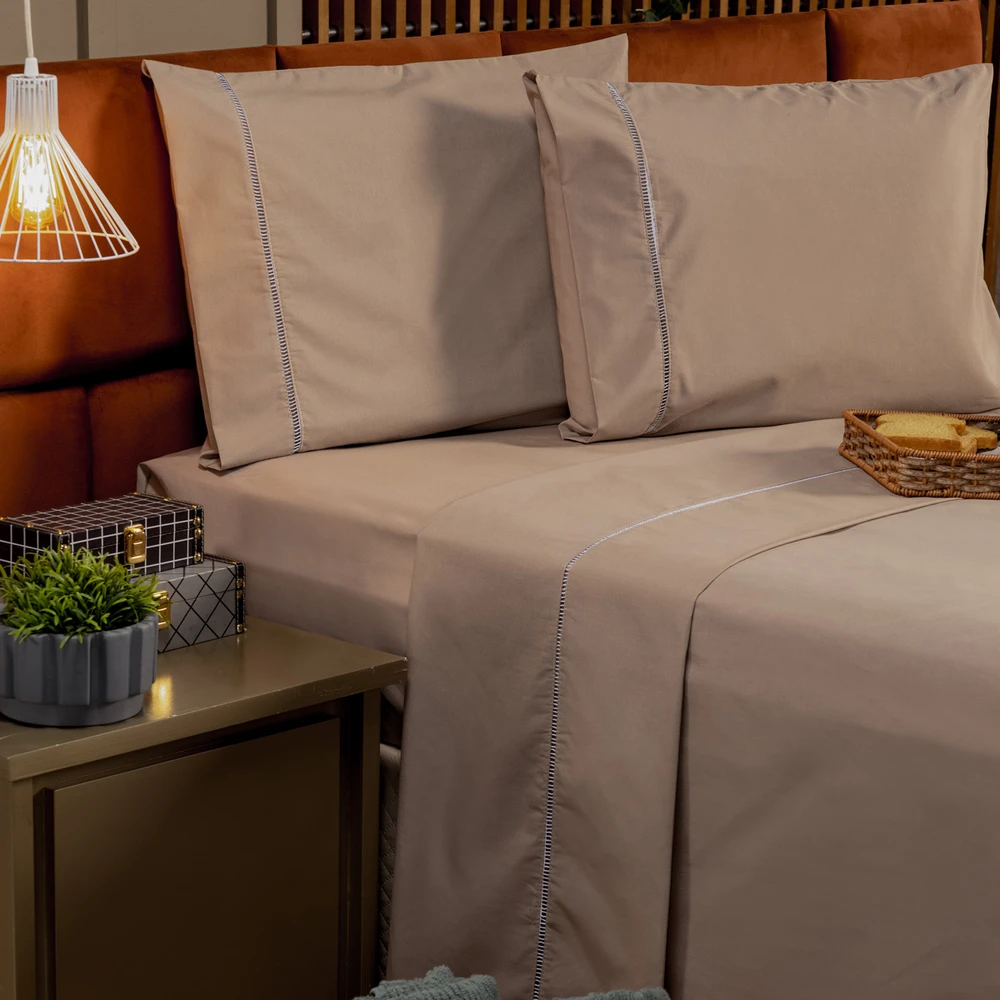 Nova coleção de lençóis Ponto Palito, com lindas cores que foram desenvolvidas especialmente para deixar o seu quarto ainda mais elegante. Esses lençóis são fabricados em tecido Percal de 200 fios composto com 80% Algodão de ótima qualidade!! Complete a decoração do seu quarto com esse lindo jogo de lençol, acompanhado das fronhas com detalhes em ponto palito no barrado! Perfeito para o conforto e a praticidade do seu dia-a-dia e também para presentear quem você ama! Confira!