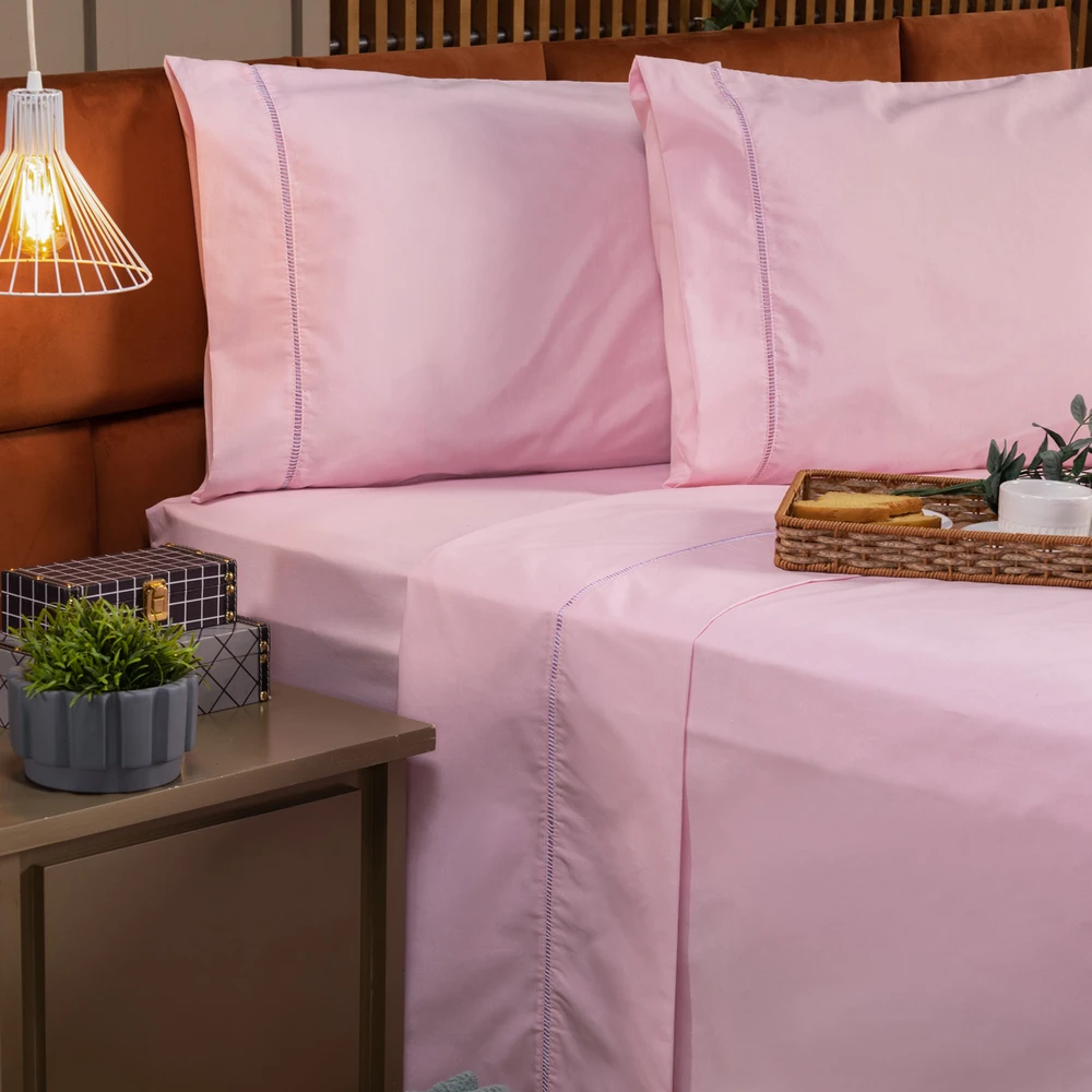 Nova coleção de lençóis Ponto Palito, com lindas cores que foram desenvolvidas especialmente para deixar o seu quarto ainda mais elegante. Esses lençóis são fabricados em tecido Percal de 200 fios composto com 80% Algodão de ótima qualidade!! Complete a decoração do seu quarto com esse lindo jogo de lençol, acompanhado da fronha com detalhes em ponto palito no barrado! Perfeito para o conforto e a praticidade do seu dia-a-dia e também para presentear quem você ama! Confira!