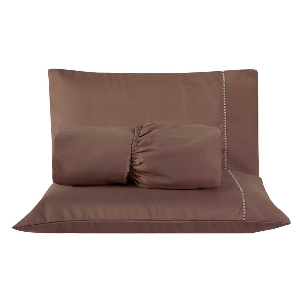 Jogo de Cama Prime Liso Tabaco Queen 03 Peças - Percal 400 Fios