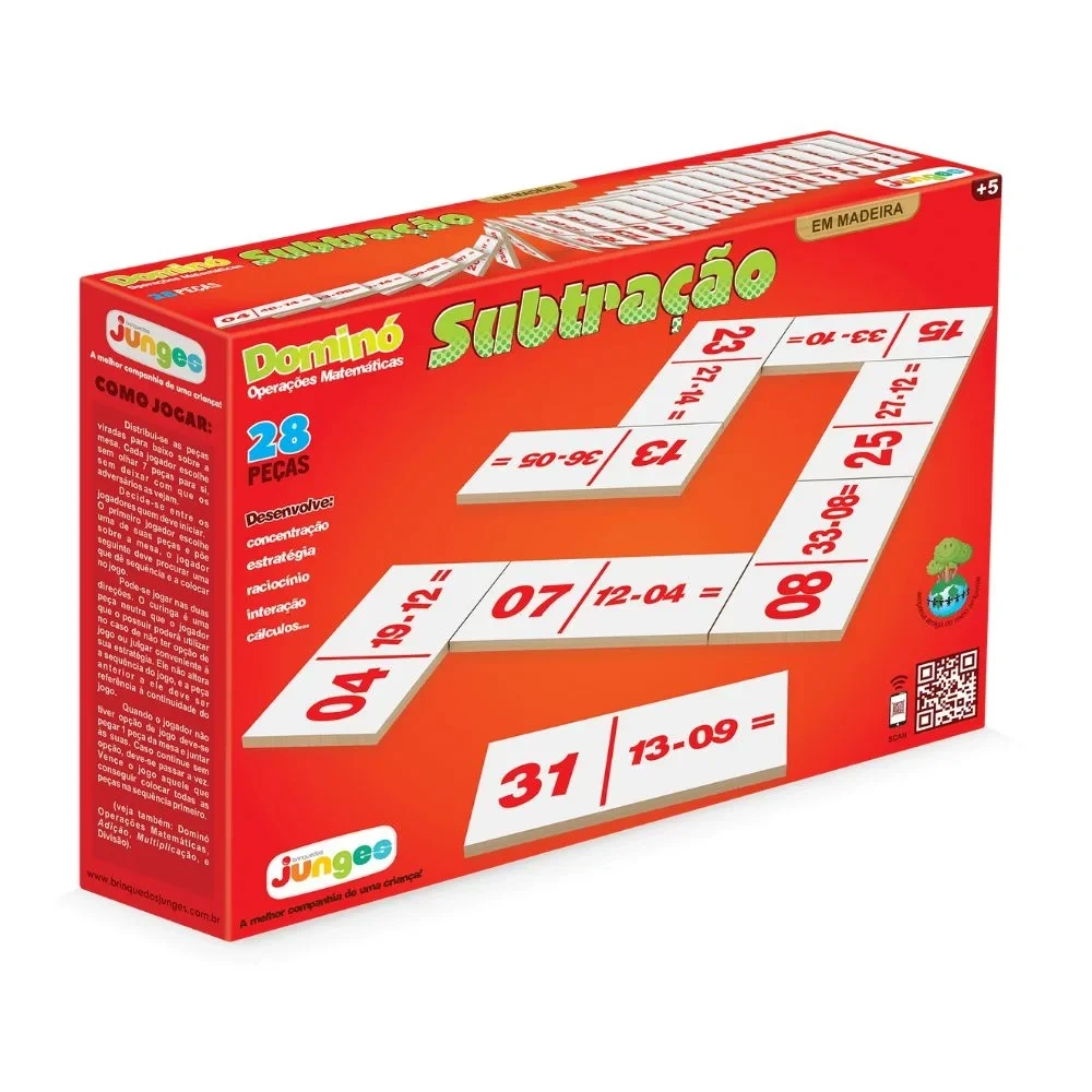 O Dominó Subtração da Junges transforma o aprendizado em diversão, estimulando o raciocínio lógico, a concentração e a atenção das crianças. Produzido em madeira de reflorestamento com impressão direta e acabamento de alta qualidade, cada peça é resistente e agradável ao toque, tornando o jogo seguro e duradouro. Uma forma lúdica de praticar a matemática enquanto se diverte sozinho ou com amigos e familiares.