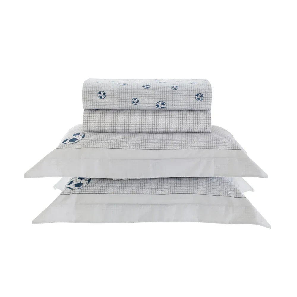 Confortável e elegante, o jogo de lençol Footbal Casa K transforma o quarto em um ambiente acolhedor e organizado.