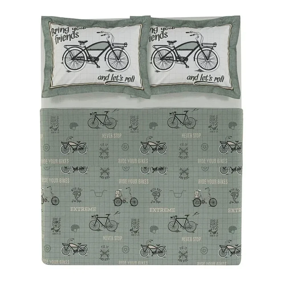 Jogo de Lençol Casal Bike 200 fios Verde Karsten