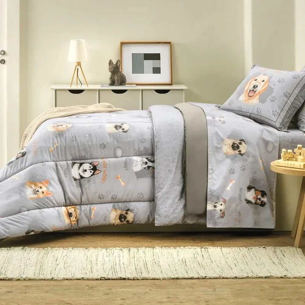 Com o Jogo de Lençol Dog Karsten, o quarto infantil ganha aconchego, diversão e um toque encantador.