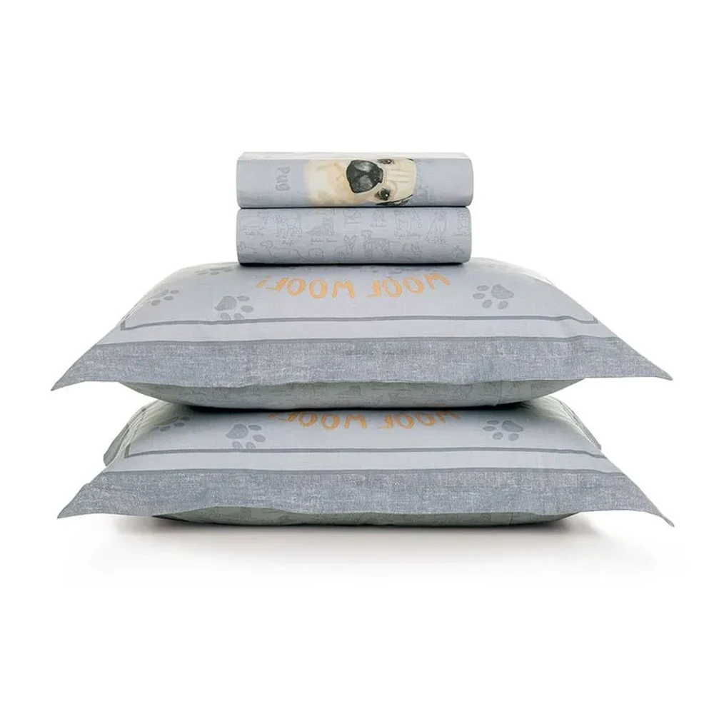 Jogo de Lençol Casal Dog 200 fios Azul Karsten
