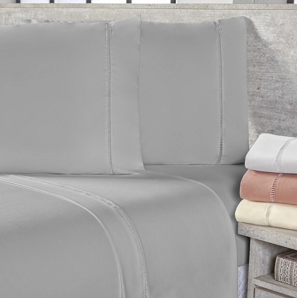 Jogo de Lençol Casal Micropercal 400 Fios Toque de Algodão 3 peças - Cinza - Casa Modelo Enxovais