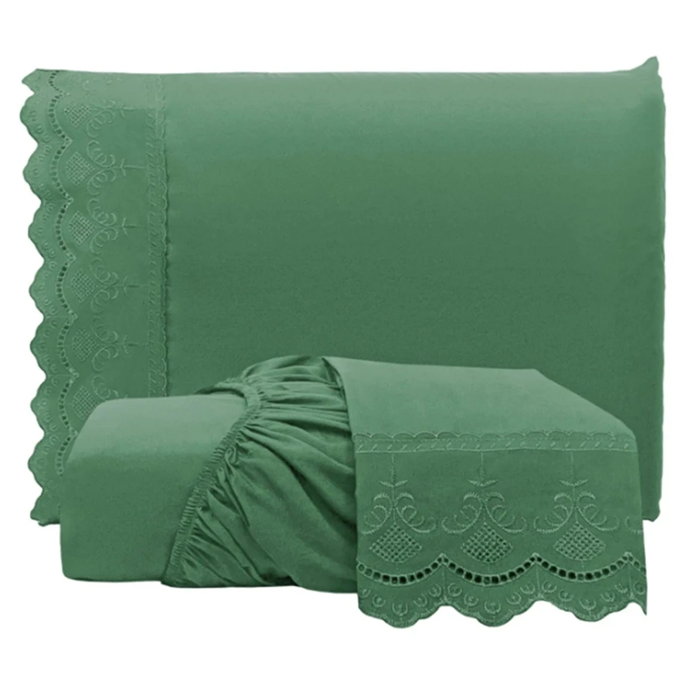 Jogo de Lençol Casal Padrão Bordado Ingles Micropercal 300 Fios Toque de Algodão 3 Peças - Esmeralda