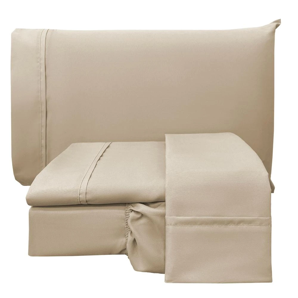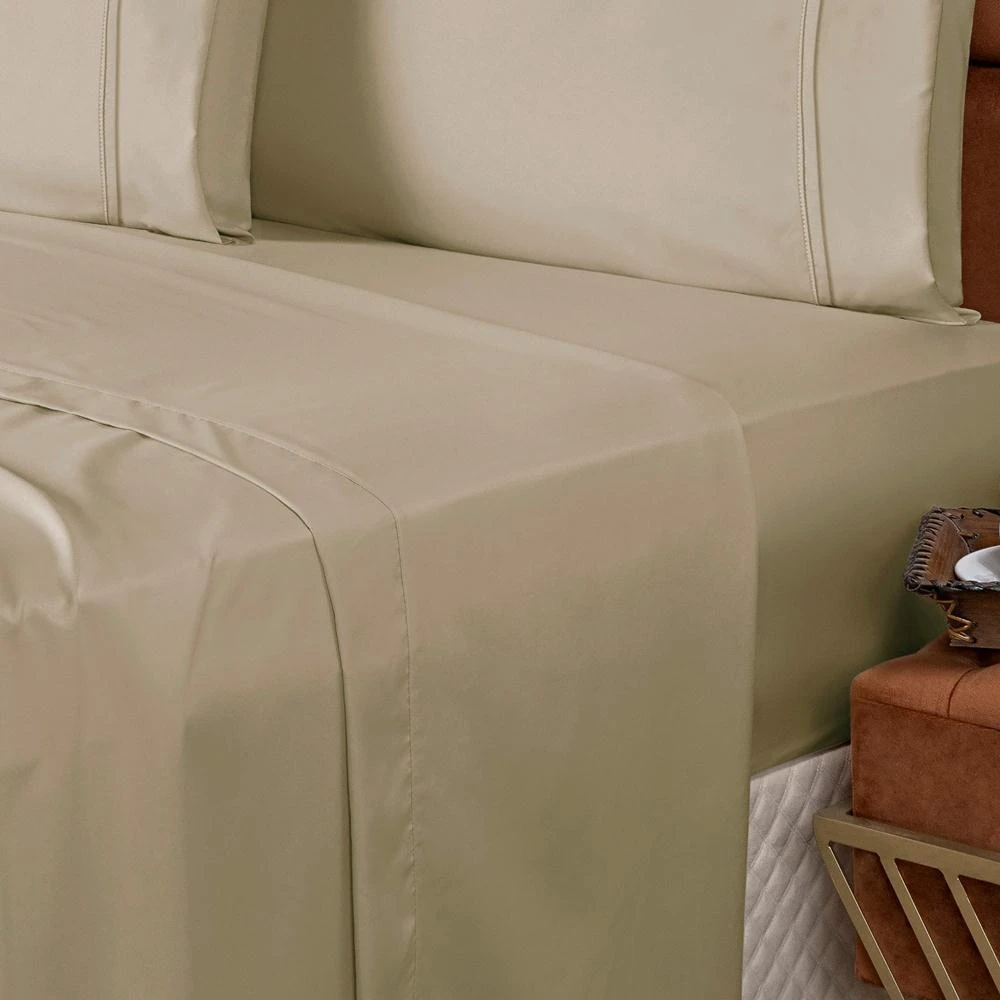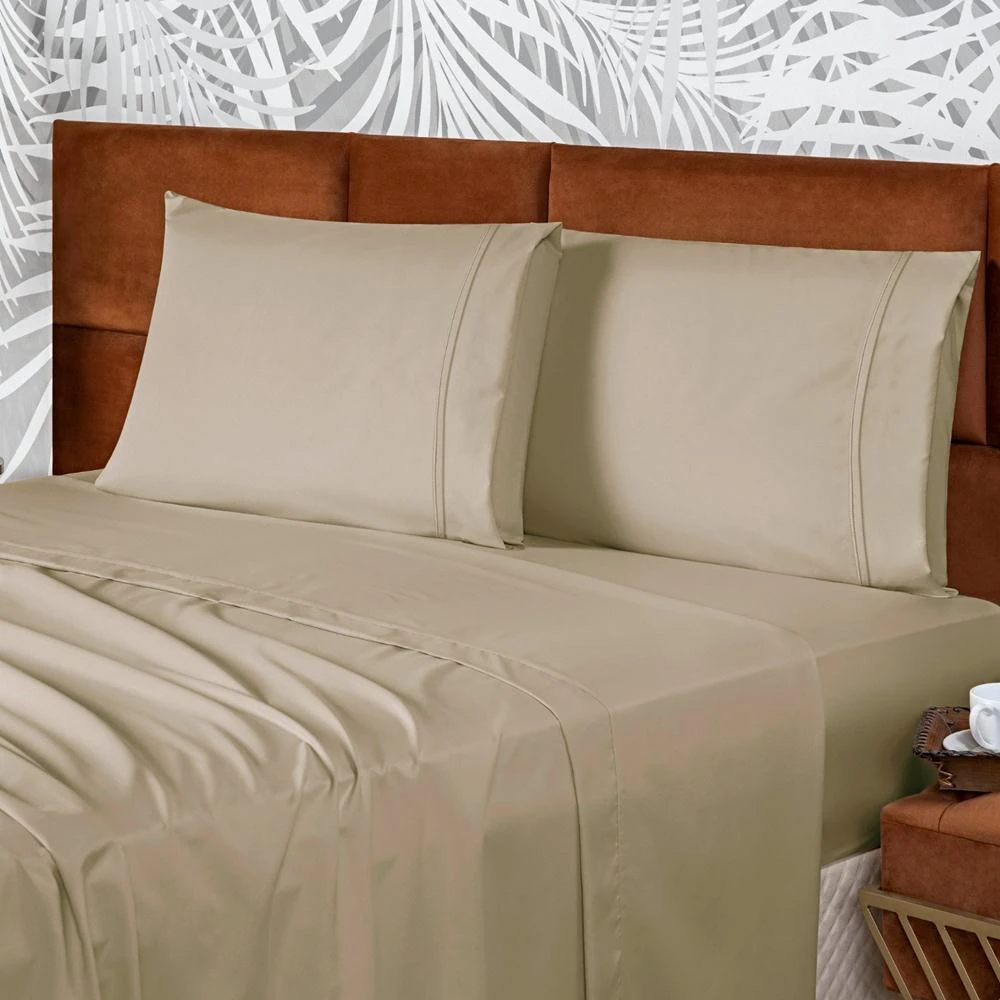 Jogo de Lençol Casal Padrão Confort Micropercal 300 Fios Toque de Algodão 4 Peças - Caqui - 100% Poliéster