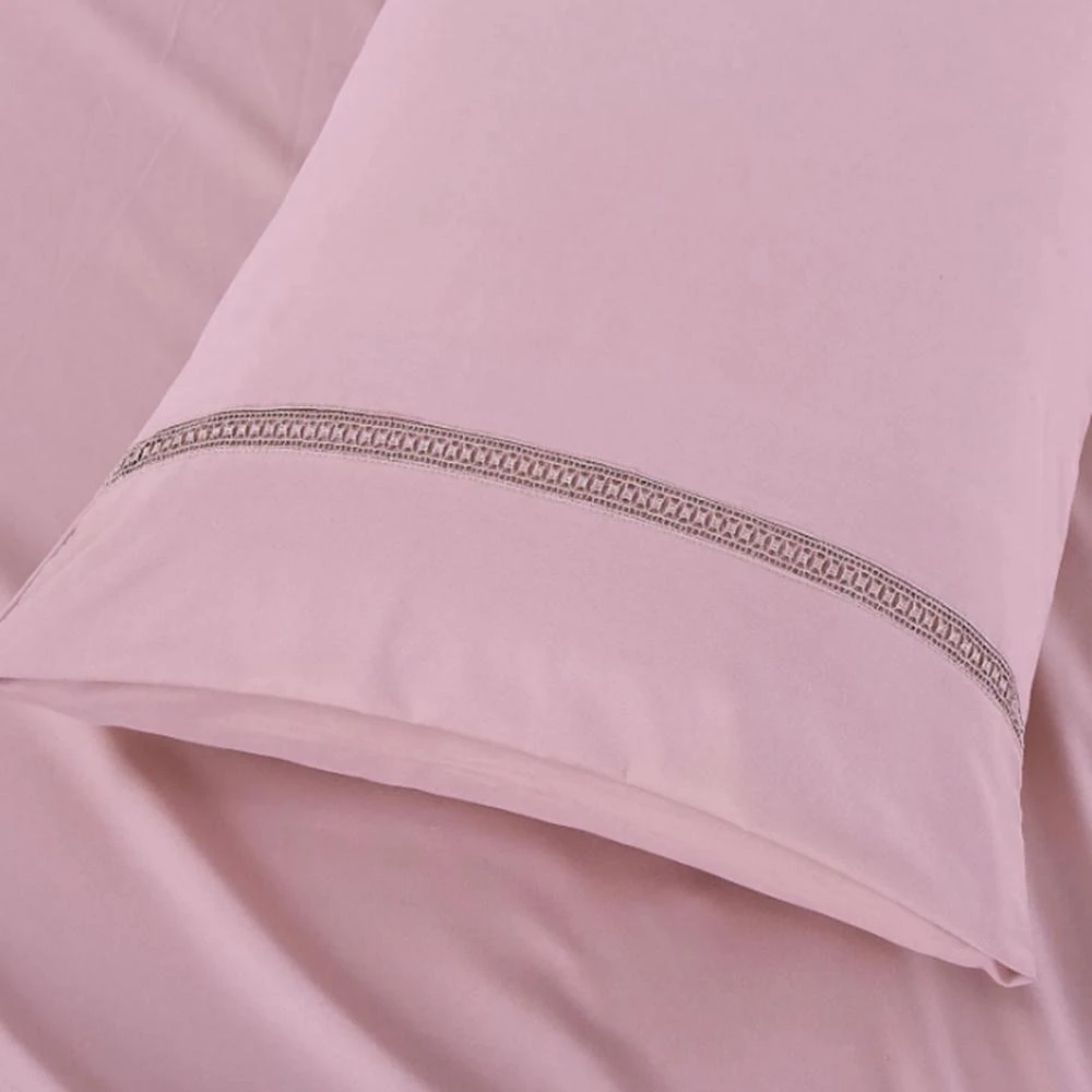O design elegante traz um bordado refinado aplicado delicadamente nas fronhas e no lençol de cima. O detalhe adiciona um charme sofisticado e atemporal à composição da cama, perfeito para quem aprecia elegância nos mínimos detalhes.
