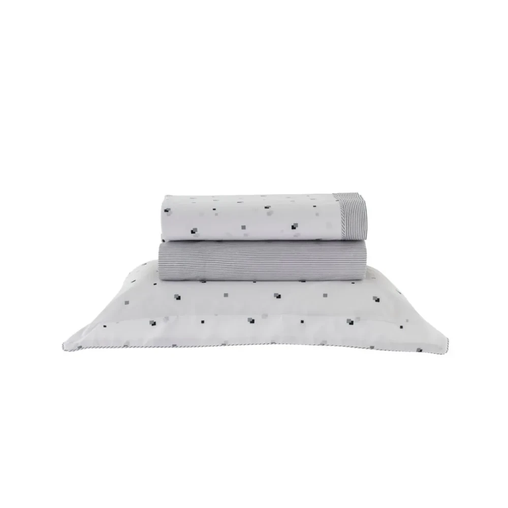 Prático e elegante, o jogo de lençol casal Vintage Cubes Casa K transforma o quarto em um ambiente confortável e acolhedor.