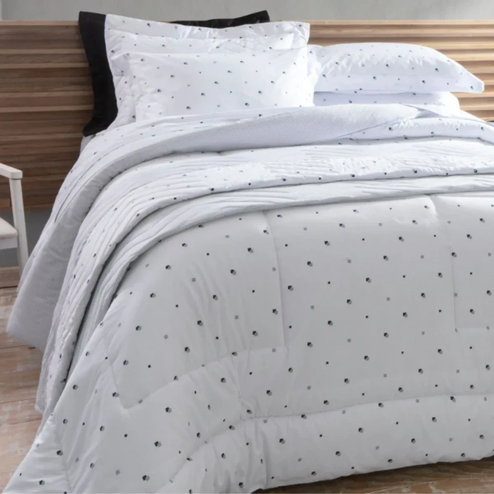 Modo de uso: Ajustar o lençol com elástico ao colchão, estender o lençol simples sobre a cama e vestir os travesseiros com as fronhas.