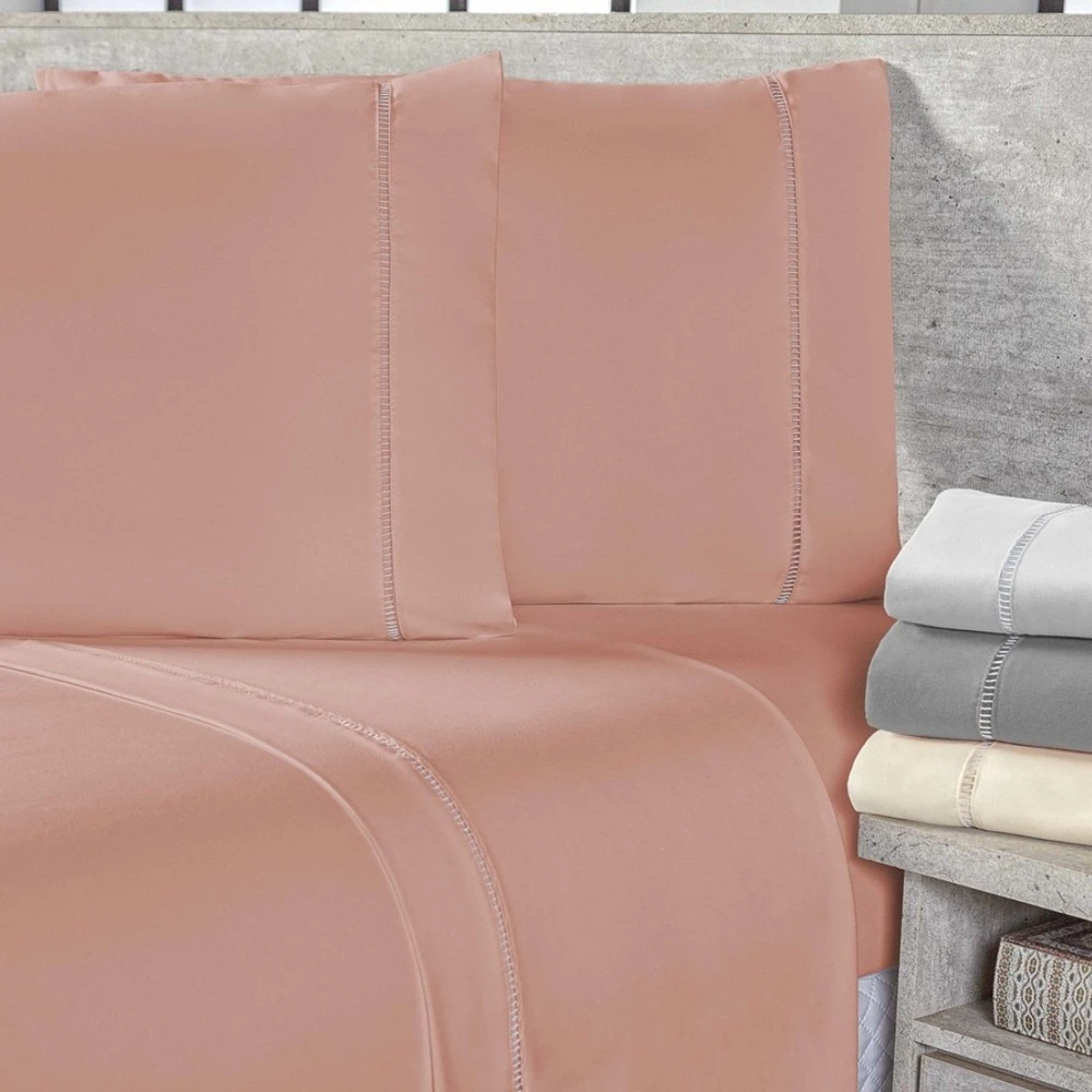 Jogo de Lençol King 400 Fios Micropercal Toque de Algodão 3 Peças - Rose - 100% Poliéser