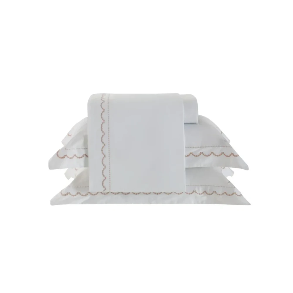 O jogo de lençol king Algarve rosa Casa K garante noites de sono confortáveis e um quarto sofisticado e acolhedor.