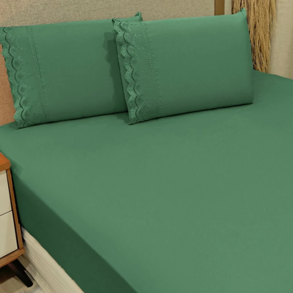 Jogo de Lençol King Bordado Ingles Micropercal 300 Fios Toque de Algodão 3 Peças - Esmeralda