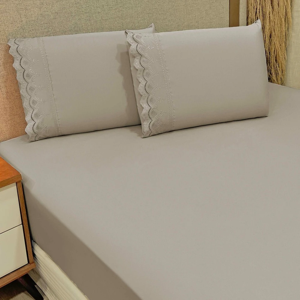Jogo de Lençol King Bordado Ingles Micropercal 300 Fios Toque de Algodão 3 Peças - Fendi