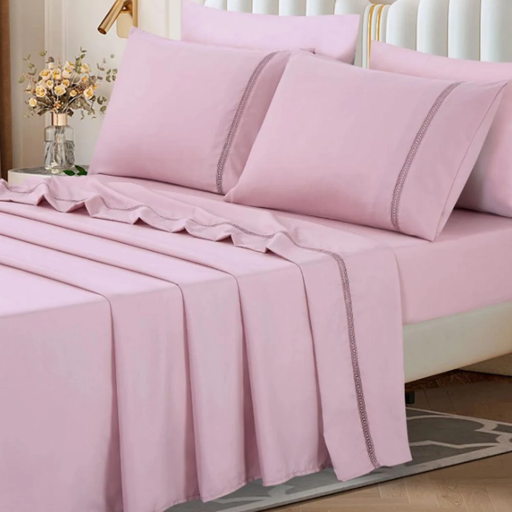 O design elegante traz um bordado refinado aplicado delicadamente nas fronhas e no lençol de cima. O detalhe adiciona um charme sofisticado e atemporal à composição da cama, perfeito para quem aprecia elegância nos mínimos detalhes.
