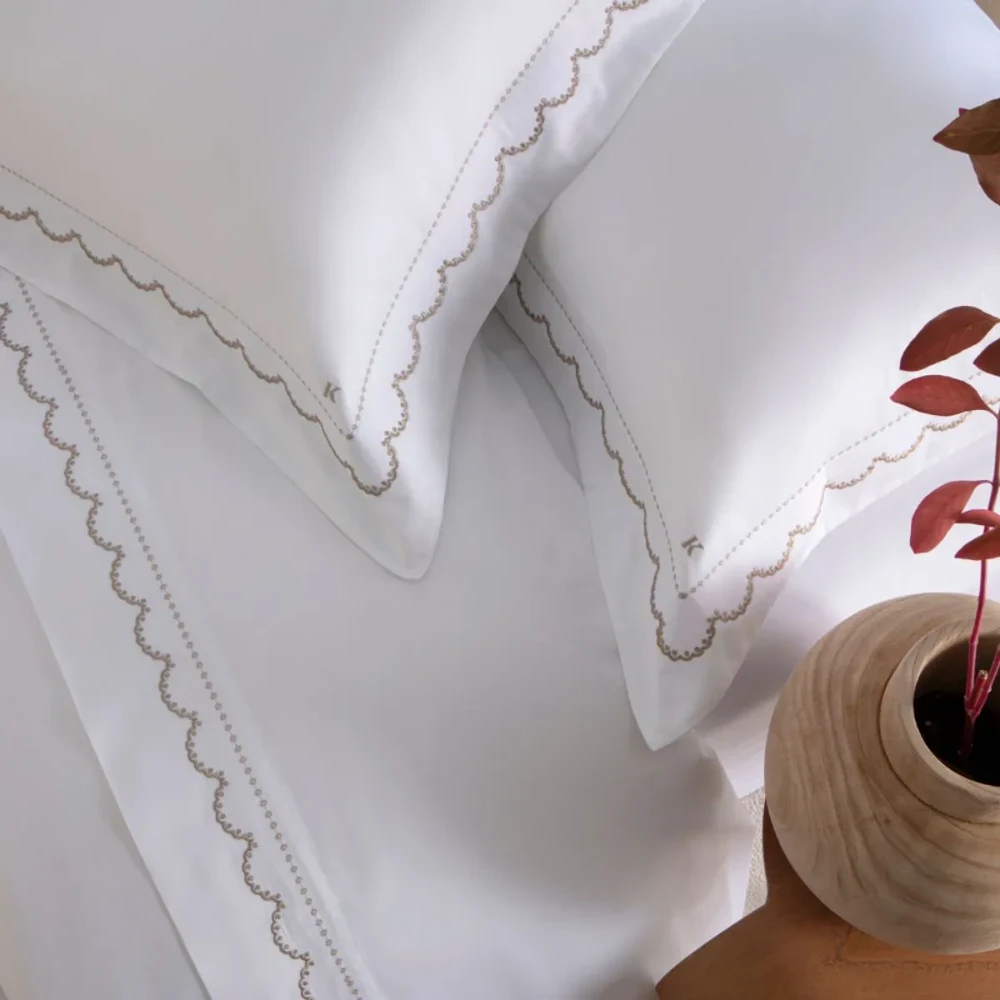 O jogo de lençol queen Algarve bege Casa K é a escolha perfeita para transformar sua cama em um espaço aconchegante e elegante.