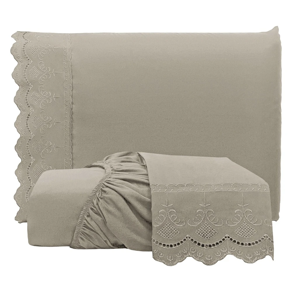 Jogo de Lençol Queen Bordado Ingles Micropercal 300 Fios Toque de Algodão 3 Peças - Fendi