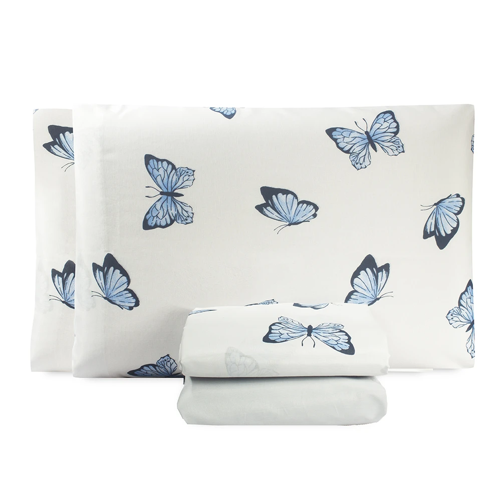 Jogo de Lençol Queen Essencialle 150 Fios 4 Peças - Borboletas Azuis