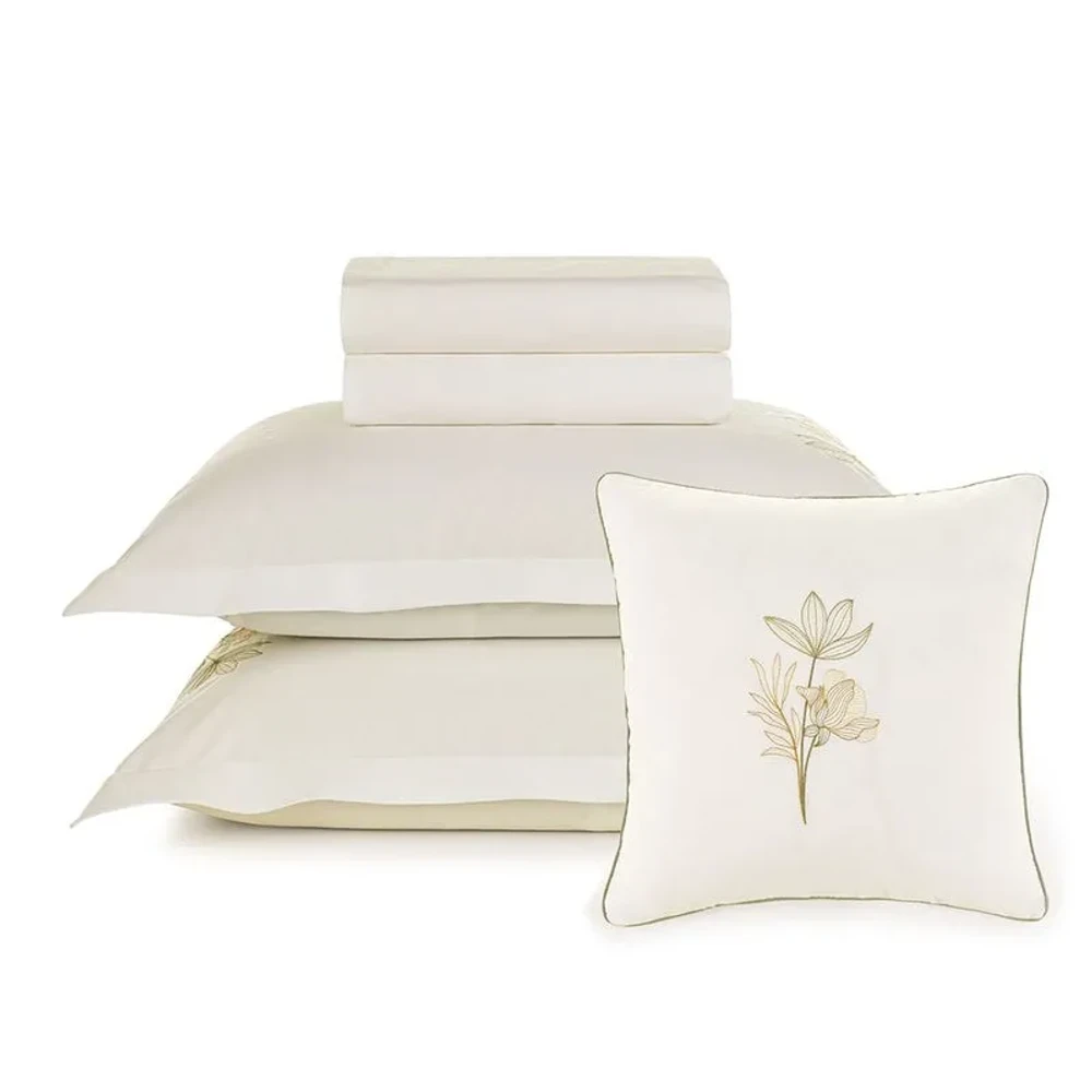 Dimensões: Sobre lençol 2,40m x 2,50m | Lençol com elástico 1,58m x 1,98m x 40cm | Fronhas 50cm x 70cm | Capa de almofada 45cm x 45cm
