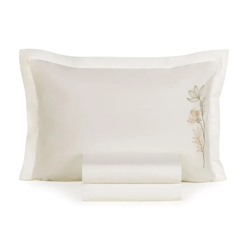 Dimensões: Sobre lençol 2,40m x 2,50m | Lençol com elástico 1,58m x 1,98m x 40cm | Fronhas 50cm x 70cm | Capa de almofada 45cm x 45cm