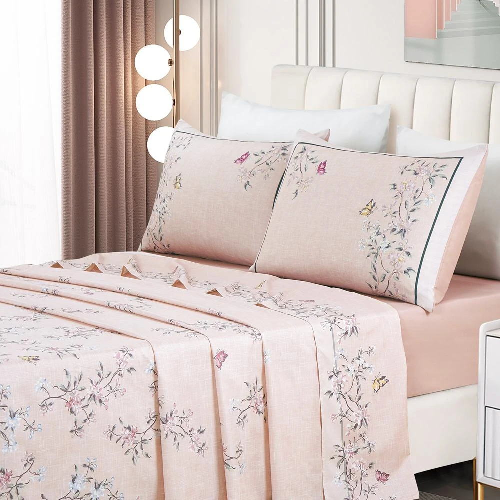 Jogo de Lençol Queen Micropercal 300 Fios Toque de Algodão 4 Peças - Ramo Malva