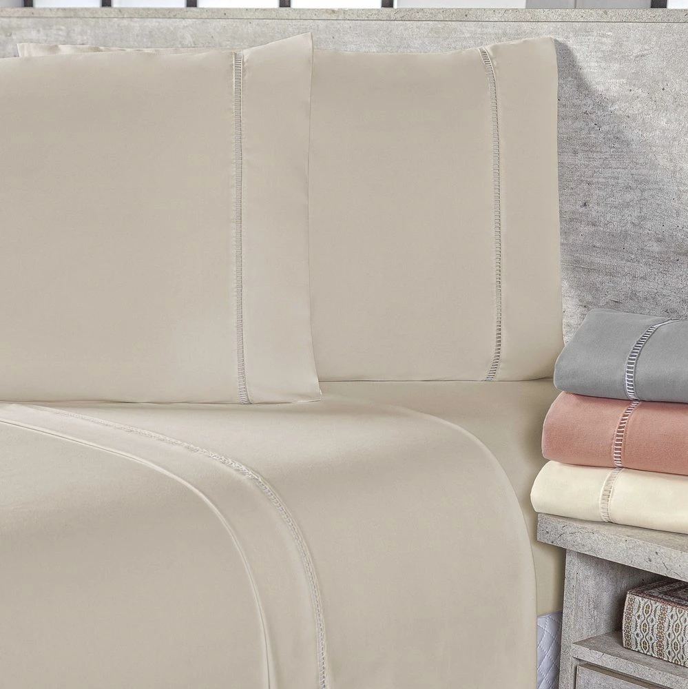 Jogo de Lençol Queen Micropercal 400 Fios Toque de Algodão 4 peças - Bege - Casa Modelo Enxovais