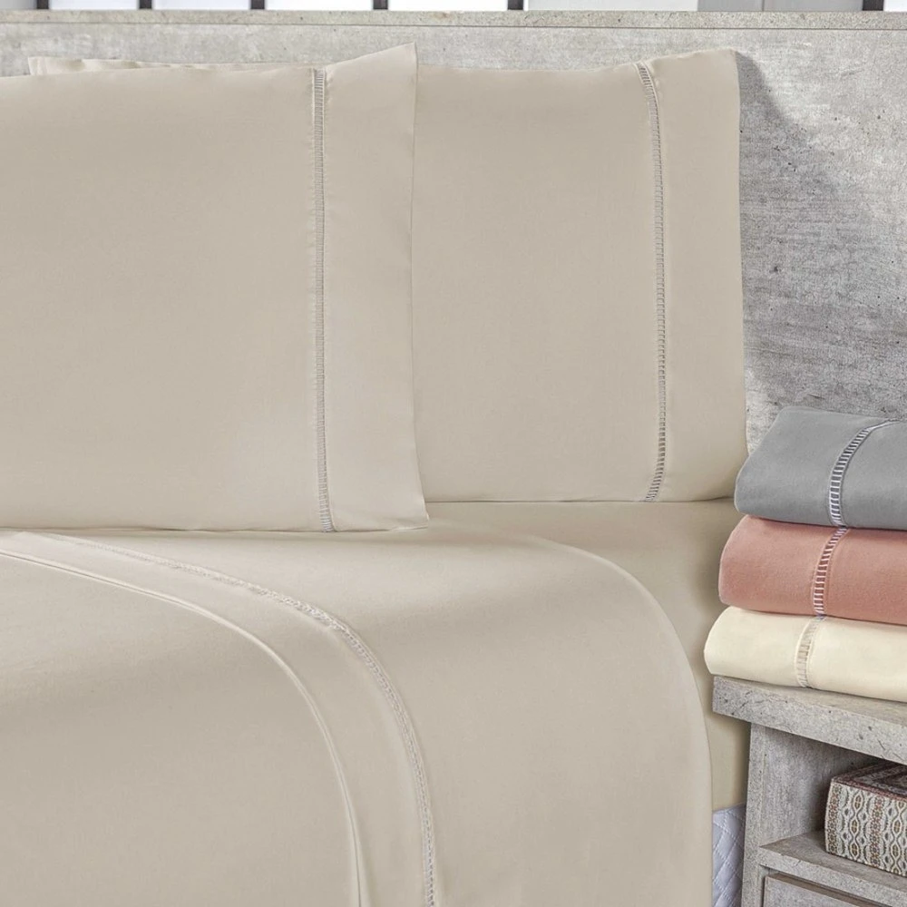 Jogo de Lençol Solteiro 400 Fios Micropercal Toque de Algodão 3 Peças - Bege - 100% Poliéser