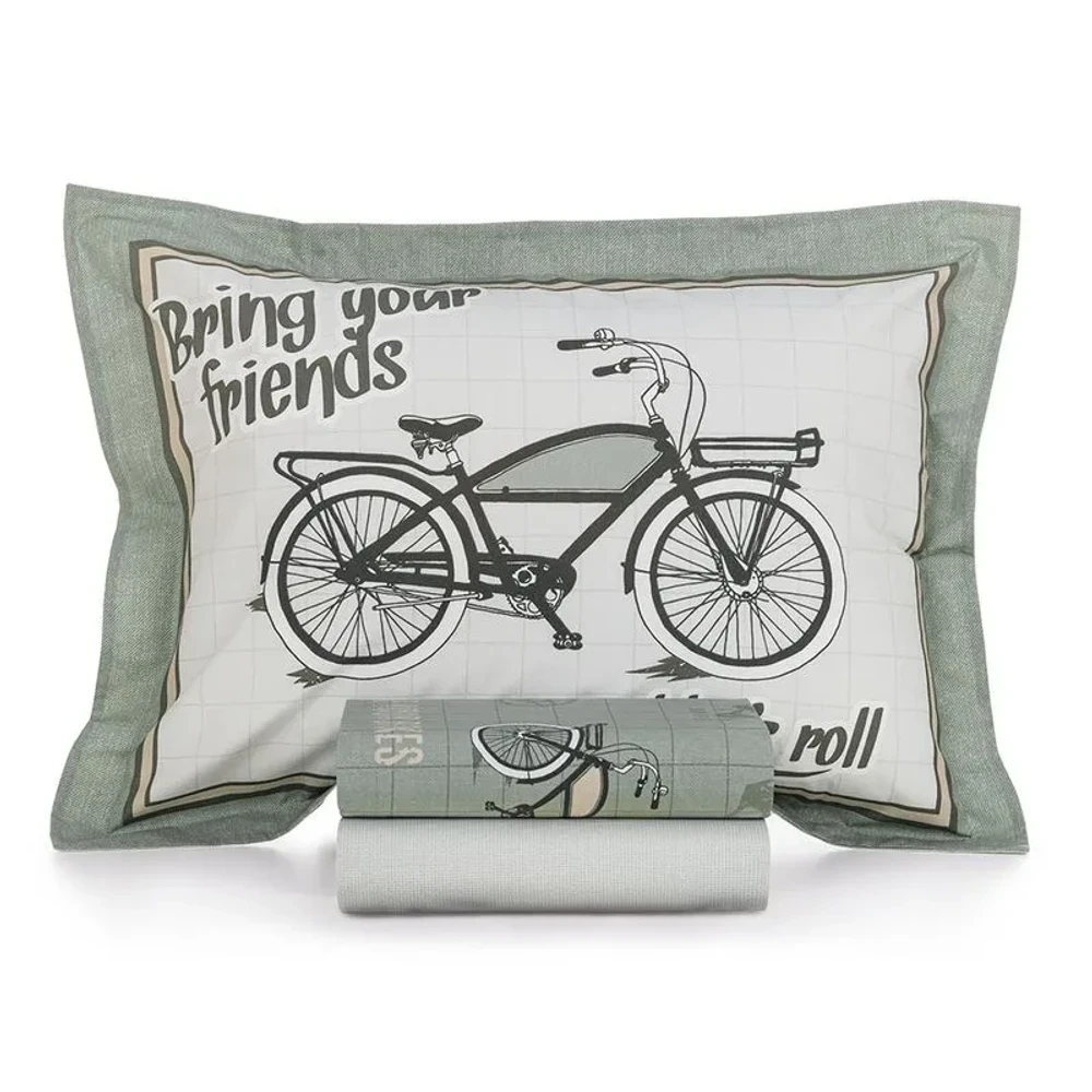 Jogo de Lençol Solteiro Bike 200 fios Verde Karsten
