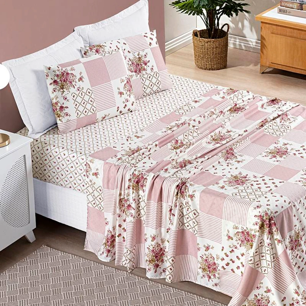 Jogo de Lençol Solteiro Bouti Estampado 3 Peças - Rosa Matura
