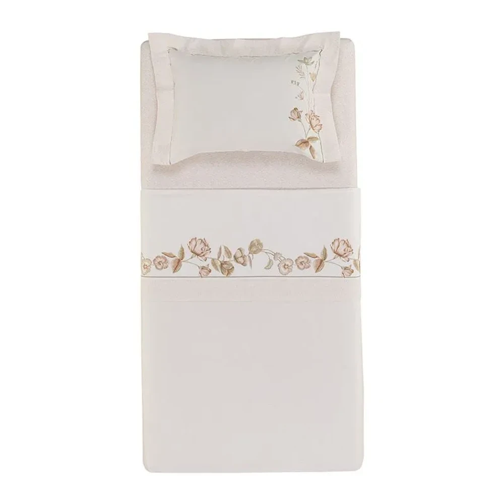 Jogo de lençol solteiro Mariê 200 fios bege Karsten