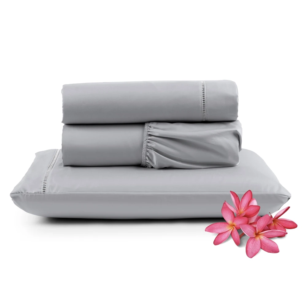 Jogo de Lençol Solteiro Micropercal 400 Fios Toque de Algodão 3 peças - Cinza - Casa Modelo Enxovais