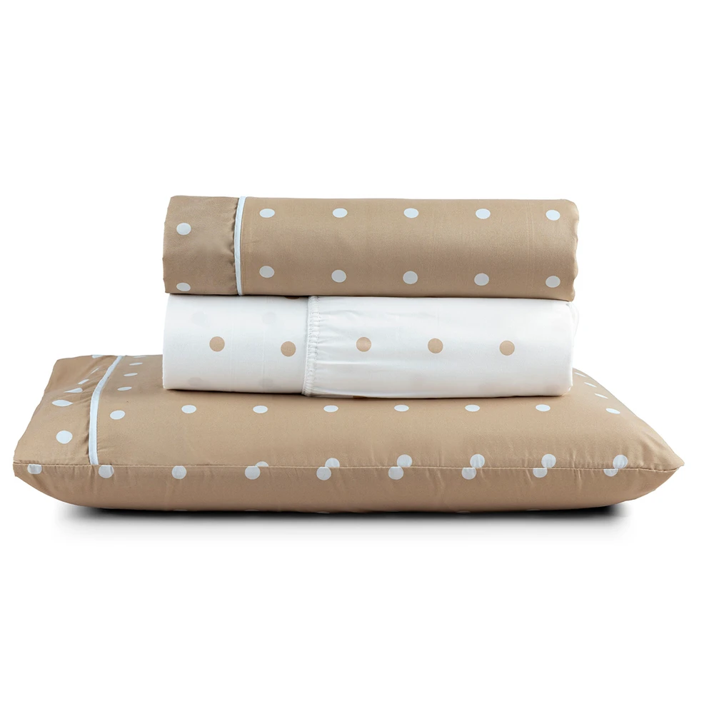 Jogo de Lençol Solteiro Petit Poa 200 Fios 3 Peças - Caqui