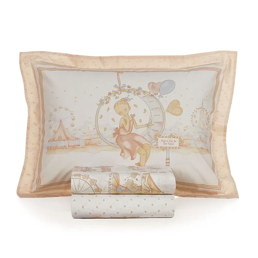 Dimensões: Sobre lençol 1,80m x 2,50m | Lençol com elástico 1,00m x 2,00m x 35cm | Fronhas 50cm x 70cm