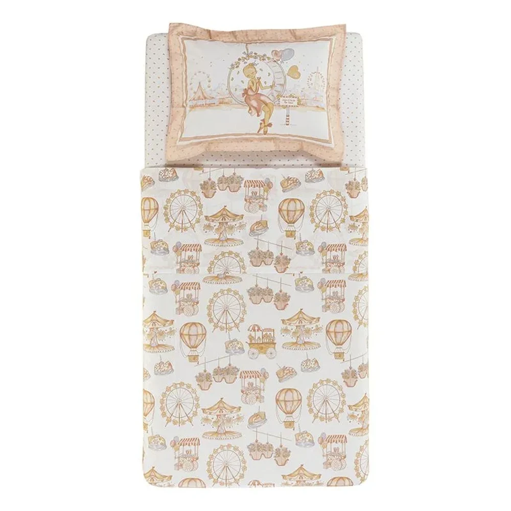 O Jogo de Cama Vick traz conforto, diversão e qualidade para o quarto infantil. Confeccionado em 100% algodão 200 fios, é macio, respirável, hipoalergênico e resistente a bolinhas, garantindo noites tranquilas e agradáveis. A estampa lúdica com brinquedos em tons suaves deixa o ambiente mais alegre e acolhedor, podendo ser combinada com a colcha e o edredom da mesma linha para uma composição encantadora.
