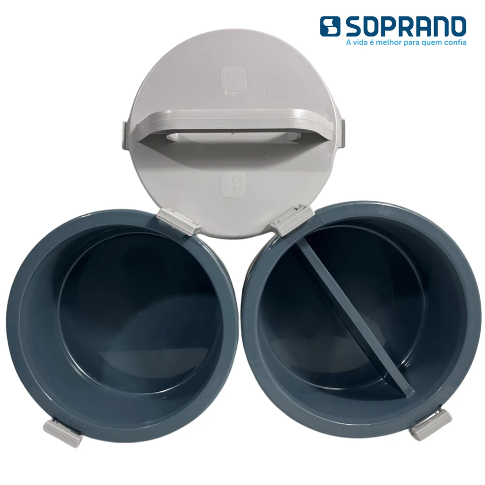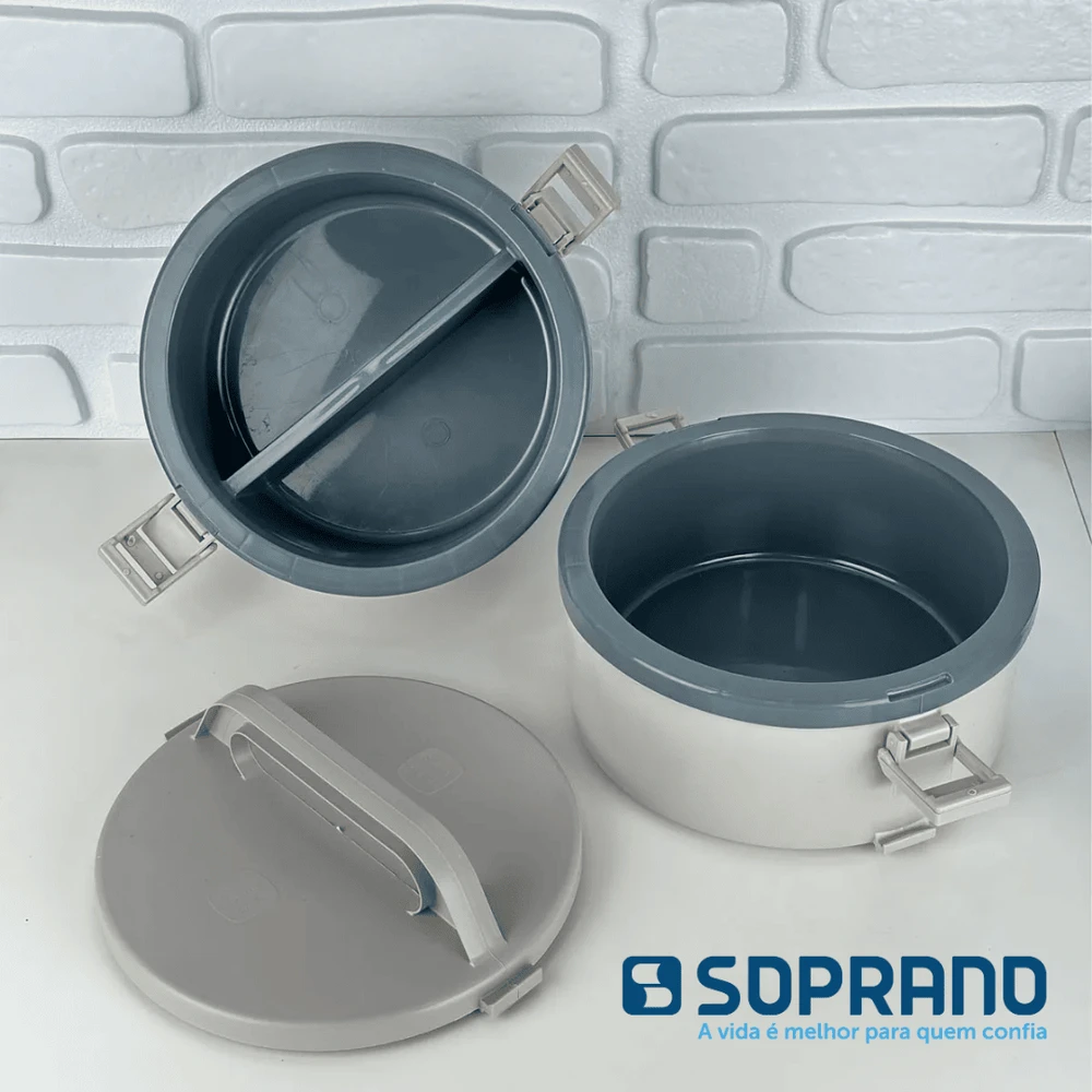 Sua estrutura é confeccionada em material resistente e de fácil limpeza, com fechamento hermético para evitar vazamentos.
