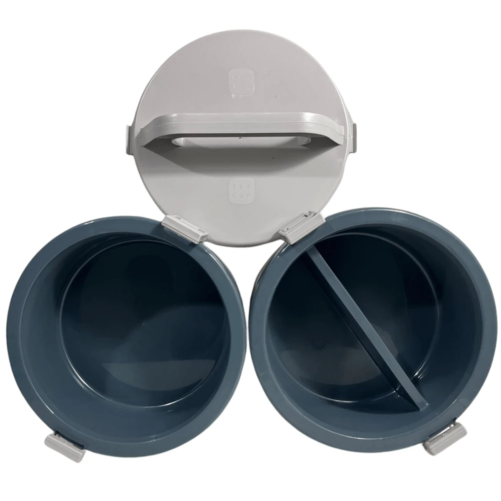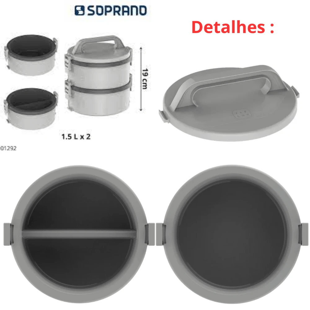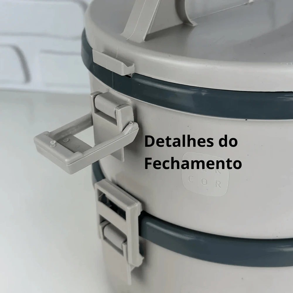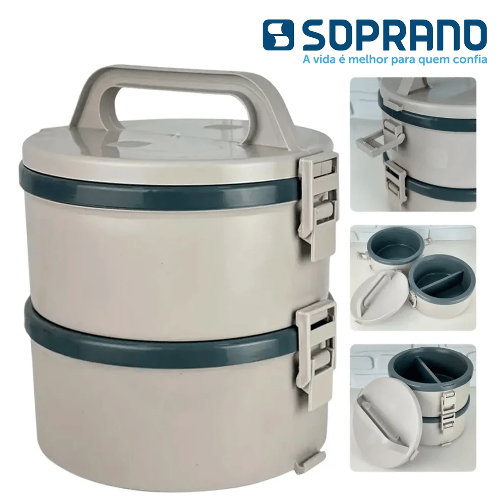 Possui dois compartimentos internos para acondicionar diferentes alimentos, mantendo-os quentes ou frios por até 4 horas.