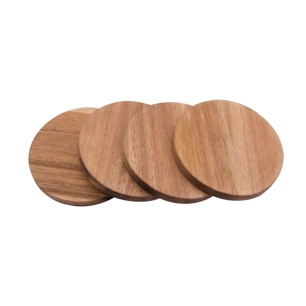 Composto por 4 porta-copos de 10cm de diâmetro e armazenados em um suporte compacto de 4cm de altura, o conjunto é ideal para uso diário ou em ocasiões especiais. A madeira de acácia, além de resistente, possui veios únicos que tornam cada peça exclusiva.