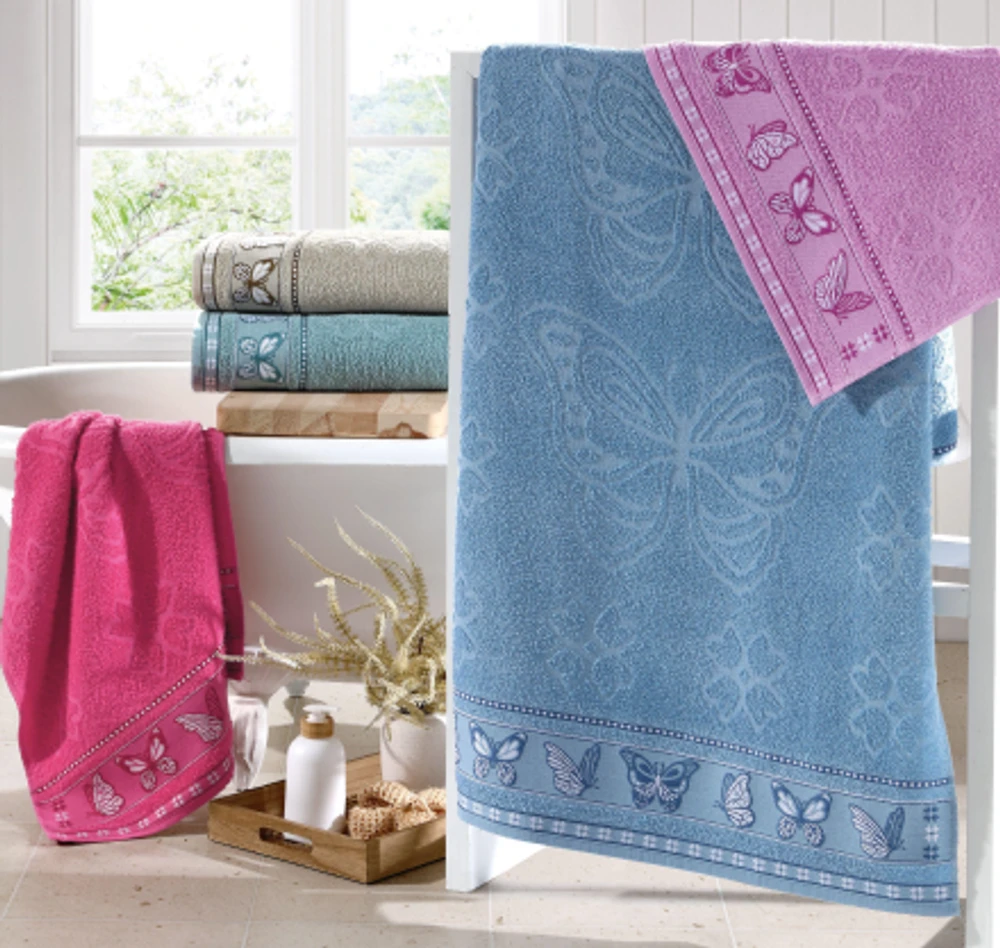 A Toalha Cindy tem um toque é macio como nuvem, mas o que realmente encanta são os delicados desenhos de borboletas, que trazem uma leveza visual ao seu banheiro.