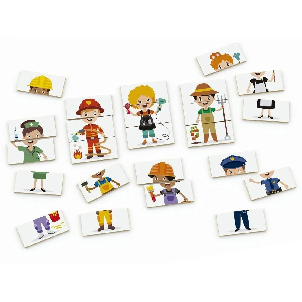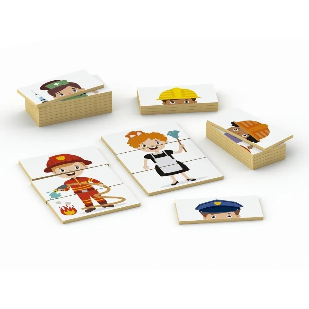 Com o Jogo Descobrindo Profissões da Junges, aprender se torna uma brincadeira divertida! São 24 peças em madeira que formam 8 cenas com diferentes profissões, promovendo o raciocínio lógico, a concentração e o reconhecimento das diversas atividades do cotidiano.